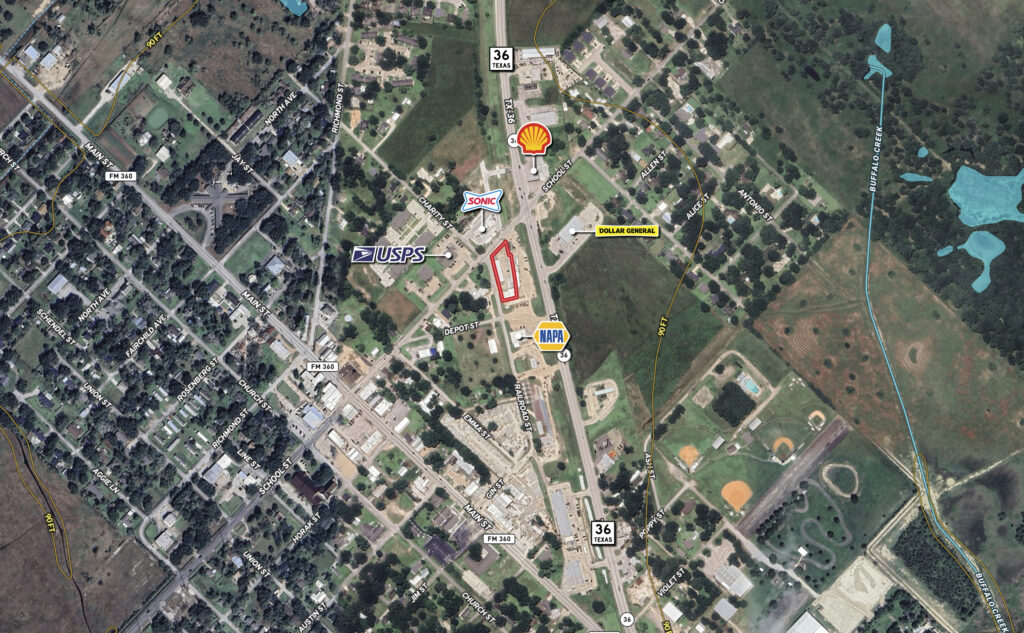• Frontage: Excellent visibility on School Street, Hwy 36, and Railroad Street